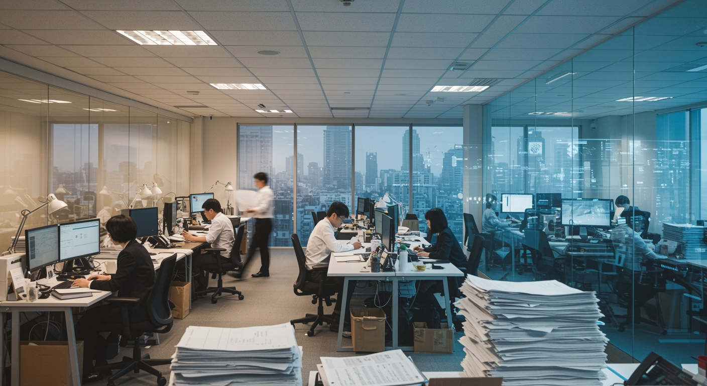 ต้องรื้อค้นไปทีละแฟ้ม เสียเวลาไปกับกองเอกสารที่ดูรกตา - “เอกสารฉบับนี้… ตกลงอันไหนที่อนุมัติแล้วกันแน่?”