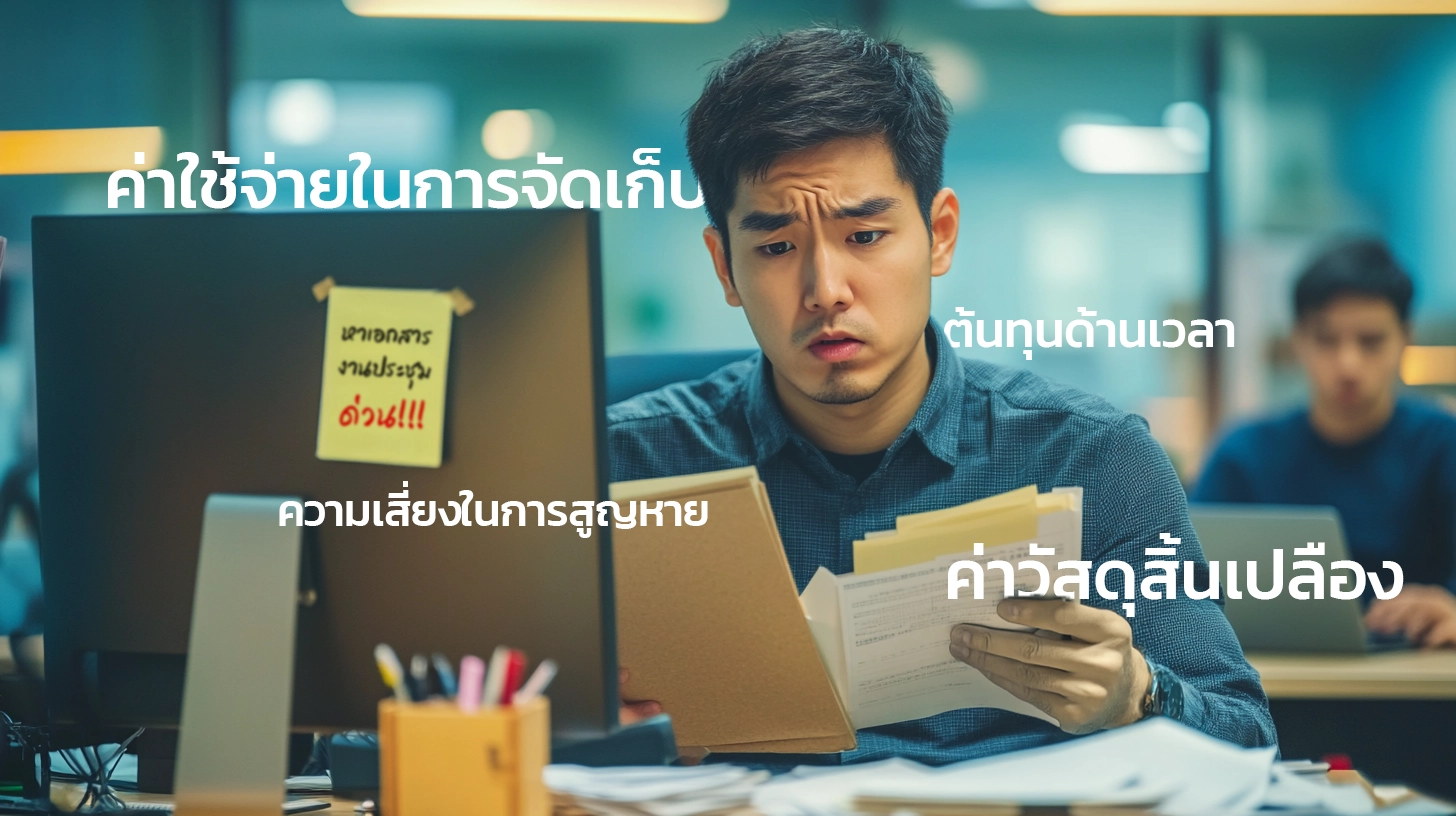 - ต้นทุนด้านเวลา – การค้นหาเอกสาร การเดินเอกสาร และการจัดเก็บที่ใช้เวลามากเกินความจำเป็น